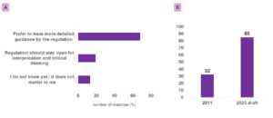 During the webinar, we asked participants how they viewed the expansion of clauses from 32 in the 2011 version to 85 in the 2025 draft on documentation. 67% responded that they preferred more detailed guidance from the regulation (Figure 2 A). This result aligns closely with the latest draft, where the number of clauses has nearly tripled (Figure 2 B). The expansion reflects the regulators’ intent to provide greater clarity and to address critical topics such as data governance systems, data integrity, and lifecycle management in much more depth. In practice, more detailed guidance means fewer ambiguities, stronger alignment with modern practices, and a more robust foundation for ensuring product quality and patient safety.
